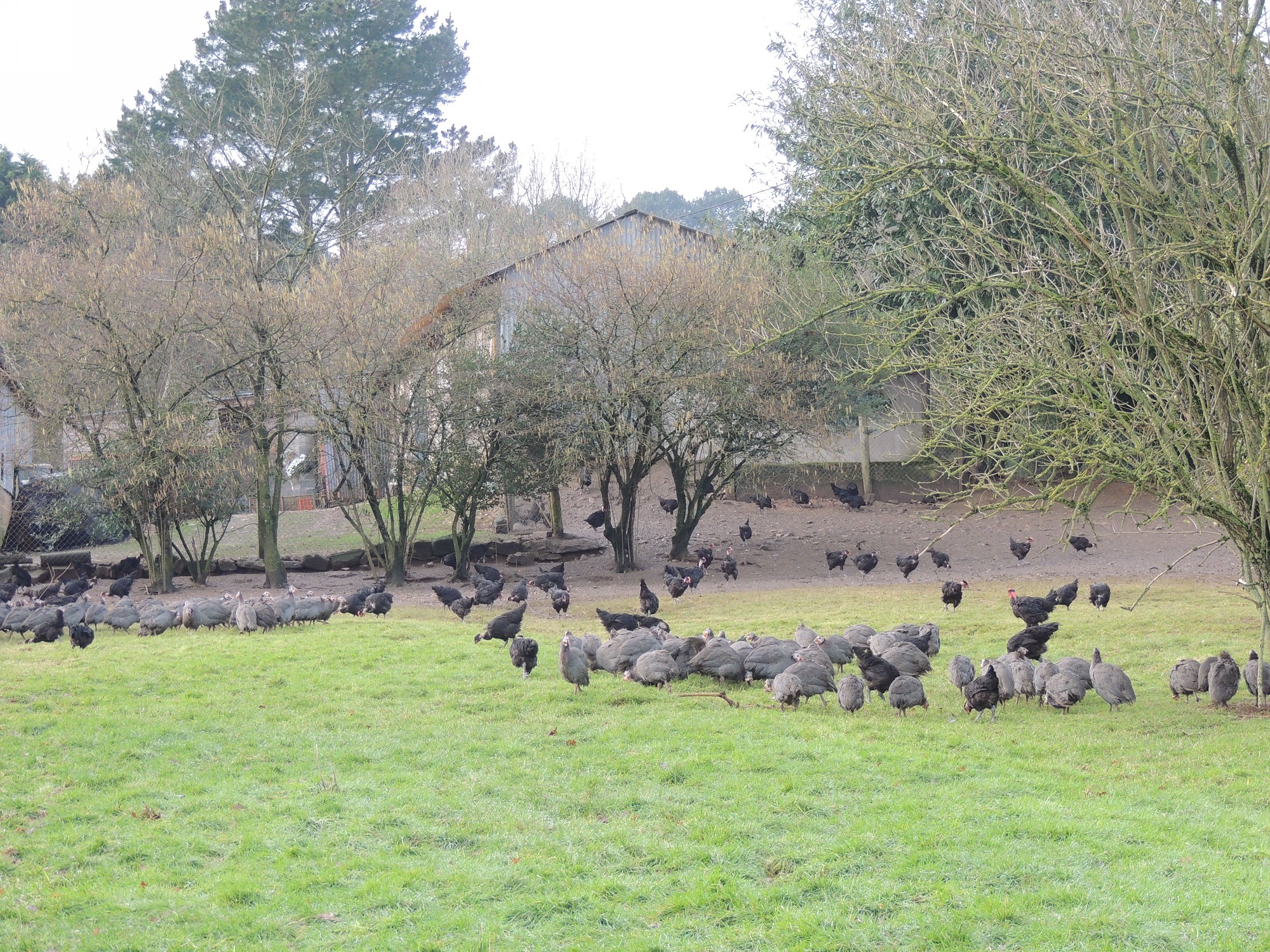 Nos volailles sont nourries avec les céréales cultivées sur la ferme de Bellevue et élevées en plein air sur plus d’un hectare de parcs enherbés et ombragés